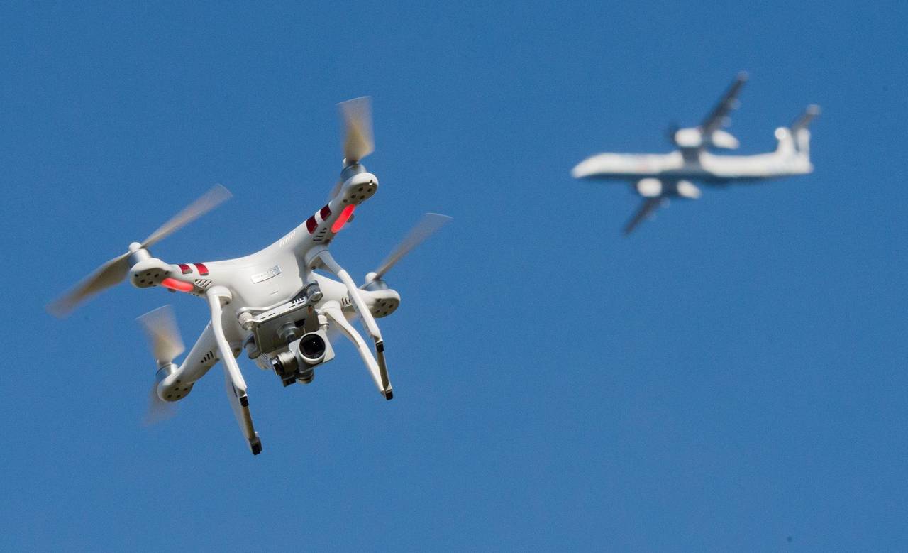 Drohne und Flugzeug