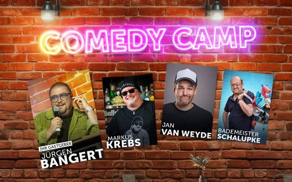 Am 26. Oktober macht das Comedy Camp Station in Wuppertal. Mit dabei sind Markus Krebs, Jan van Weyde und Bademeister Schaluppke. Durch den Abend führt Camp-Leiter Jürgen Bangert.