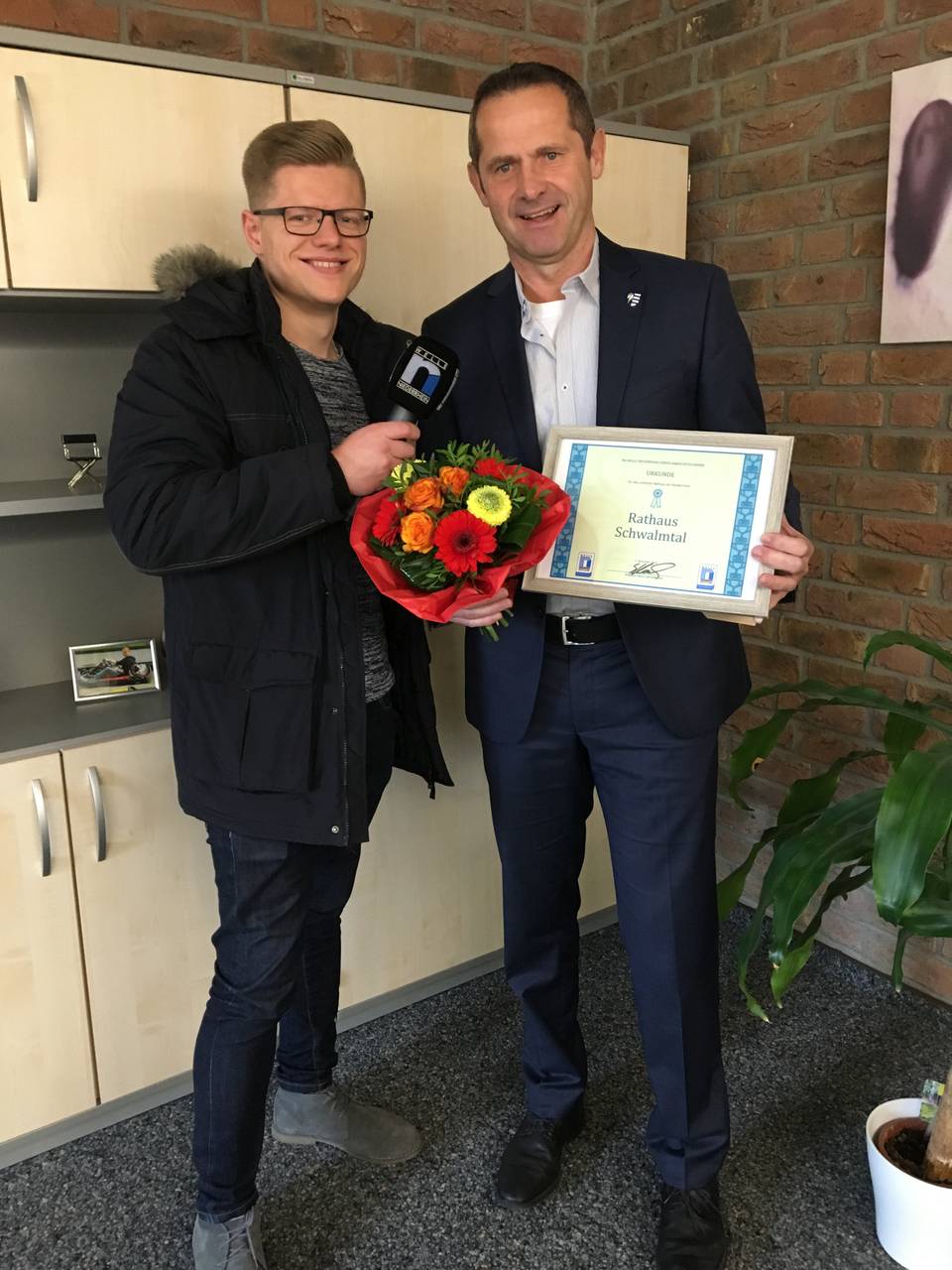 Schwalmtal hat das schönste Rathaus hier bei uns am Niederrhein. Bügermeister Michael Pesch hat sich über den Sieg sehr gefreut.